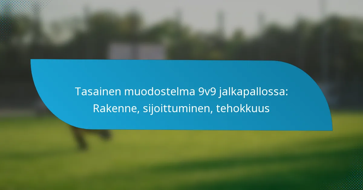 Tasainen muodostelma 9v9-jalkapallossa on taktinen asettelu, jossa pelaajat on järjestetty vaakasuoraan linjaan kentän poikki, keskittyen tyypillisesti puolustuksellisen vakauden ylläpitämiseen ja leveyden tarjoamiseen hyökkäyksessä. Tämä muodostelma korostaa tasapainoa hyökkäyksen ja puolustuksen välillä, mikä mahdollistaa joukkueiden sopeutuvan erilaisiin pelitilanteisiin tehokkaasti.