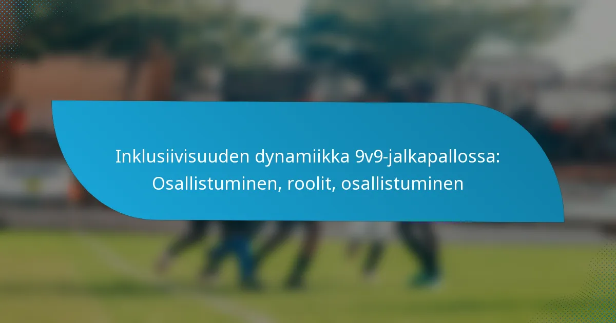 Inklusiivisuuden dynamiikka 9v9-jalkapallossa on ratkaisevassa roolissa pelaajien sitoutumisen ja osallistumisen parantamisessa eri ryhmien keskuudessa. Toteuttamalla keskeisiä strategioita, jotka edistävät tervetulleita ympäristöjä ja mukauttavat pelaajaroolit, joukkueet voivat luoda tukevan ilmapiirin, jossa jokainen tuntee itsensä arvostetuksi. Kohdennetut lähestymistavat esteiden käsittelemiseksi ja inklusiivisuuden edistämiseksi ovat välttämättömiä osallistumisasteiden parantamiseksi ja varmistaakseen, että kaikki yksilöt voivat menestyä urheilussa.